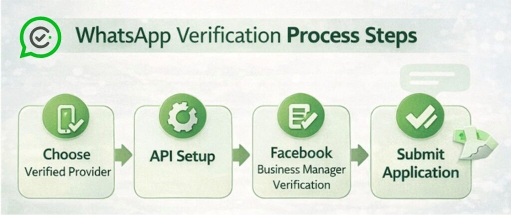 Step 1: Businesses cannot apply directly to WhatsApp. Applications must be submitted through an authorised Verified WhatsApp service provider.
